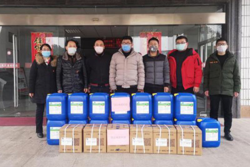 2月3日上午,在疫情防控特殊时期,在防护消毒物资紧缺的情况下,我公司志愿者服务队想方设法从省城采购的20箱消毒液和六箱洗手液,为战斗在一线工作岗位上的公安干警和金开区工作人员送去抗疫用品。向你们致敬!