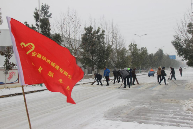 2018年1月3日,纷扬的大雪使大地穿上“银装”同时,也给市民群众的出行带来极大的不便和安全隐患。为了确保道路畅通,消除雪后的安全隐患,4日一大早,国达城建党支部及志愿小分队便立即行动起来,进行铲雪。齐心协力,开辟出一条条安全的通道,为人民群众营造了安全的环境。