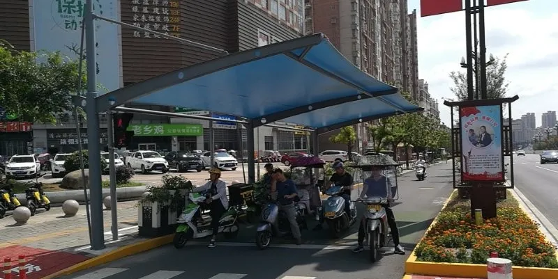 为提升六安城市形象,方便市民出行,在六安城区梅山路、解放路、大别山路等主干道设置了路口遮阳棚